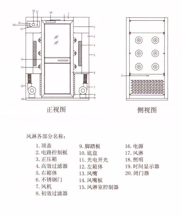 1、 接通380V,50HZ電源(L1、L2、L3-火線,N-零線,E-接地線),打開工作、照明開關,確認風機與照明工作正常,此時,風/貨淋室處于初始狀態,人員可以進行正常操作。