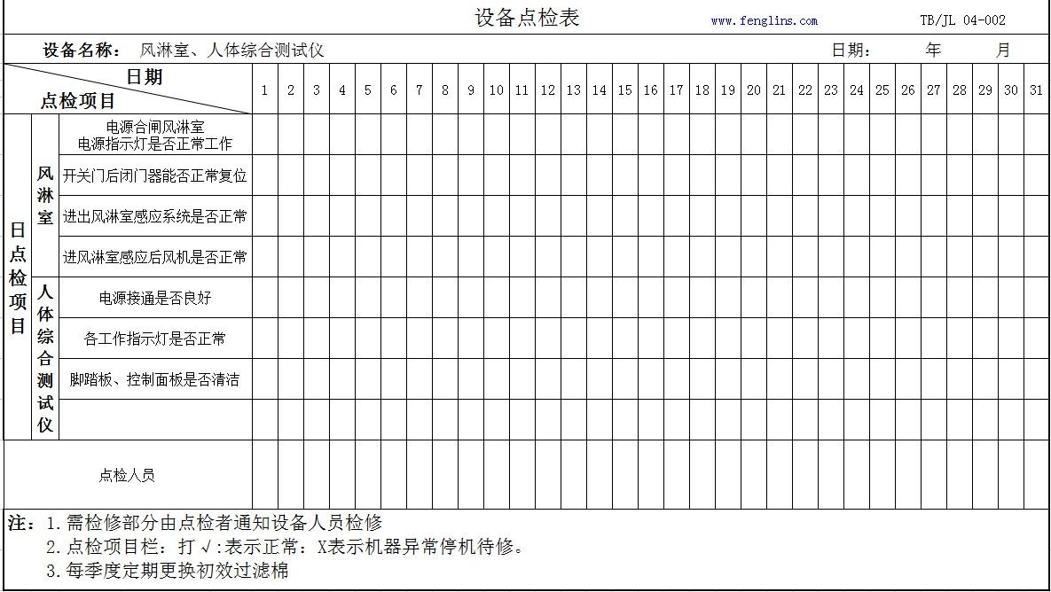 風淋室設備點檢表參考