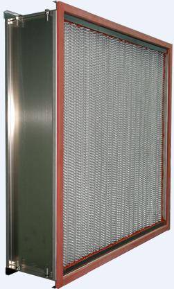 耐高溫高效過濾器依然是有隔板結構,使用耐高溫玻纖或超細玻璃纖維濾紙,鋁箔隔板,不銹鋼外框,特制耐高溫密封膠密封裝配而成,每臺均經嚴格測試。效率可達F9-H14.主要用于生產環節要求烘干的超潔凈烘箱或要求高溫空氣凈化設備和系統。最高工作溫度可達400度。